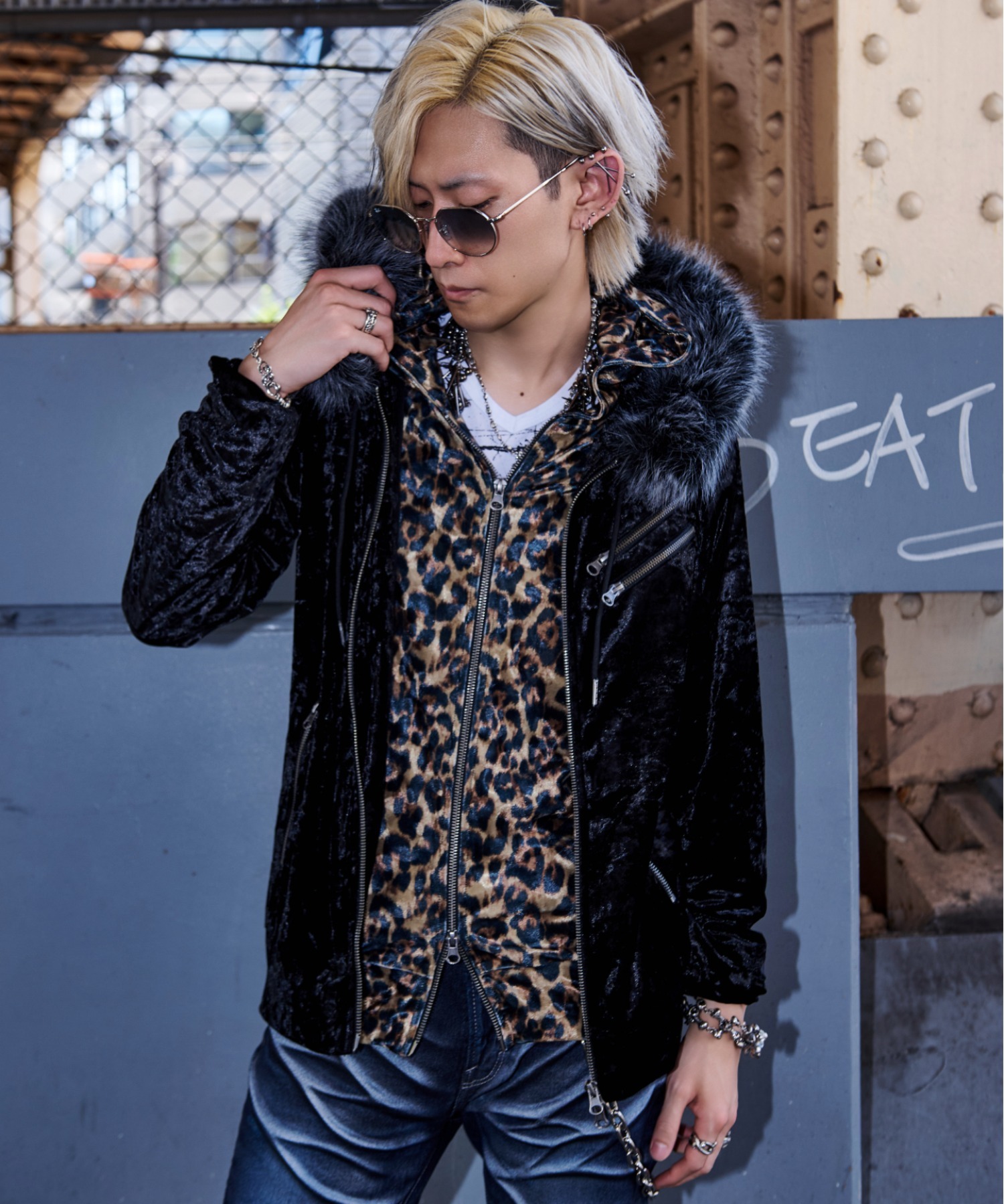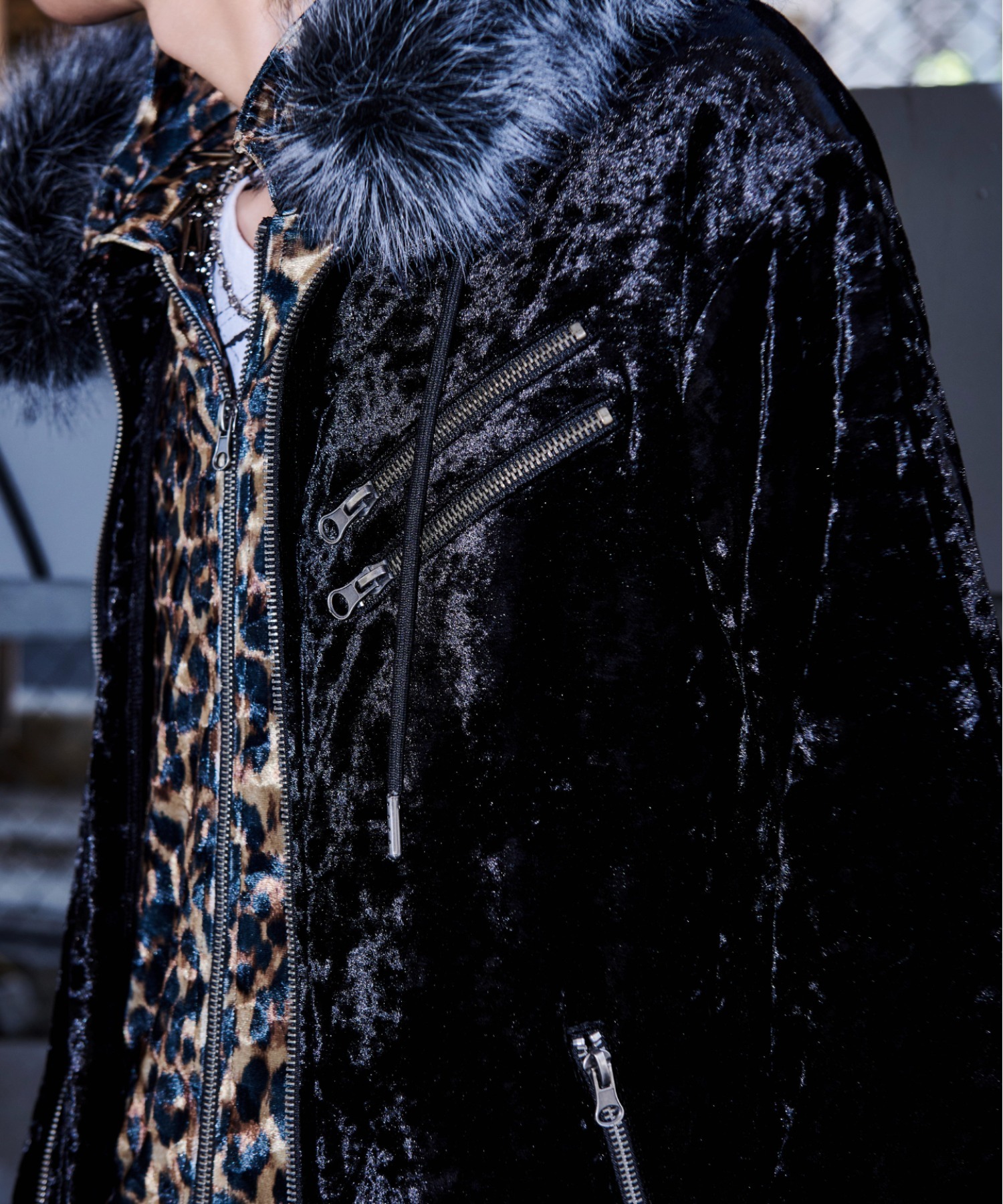 ※The leopard fabric is designed with a faux-layered style, giving the appearance of wearing two layers while being a single garment.