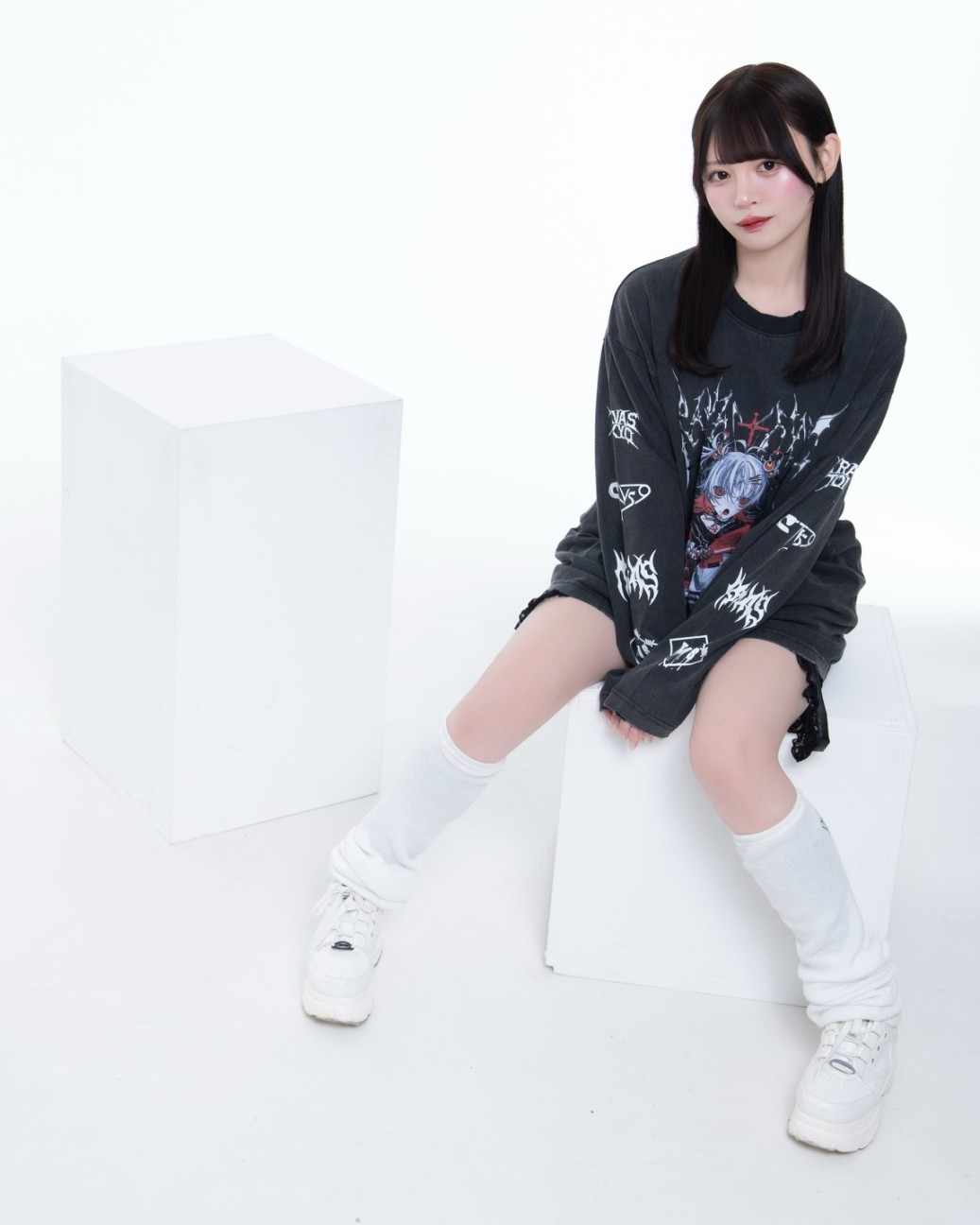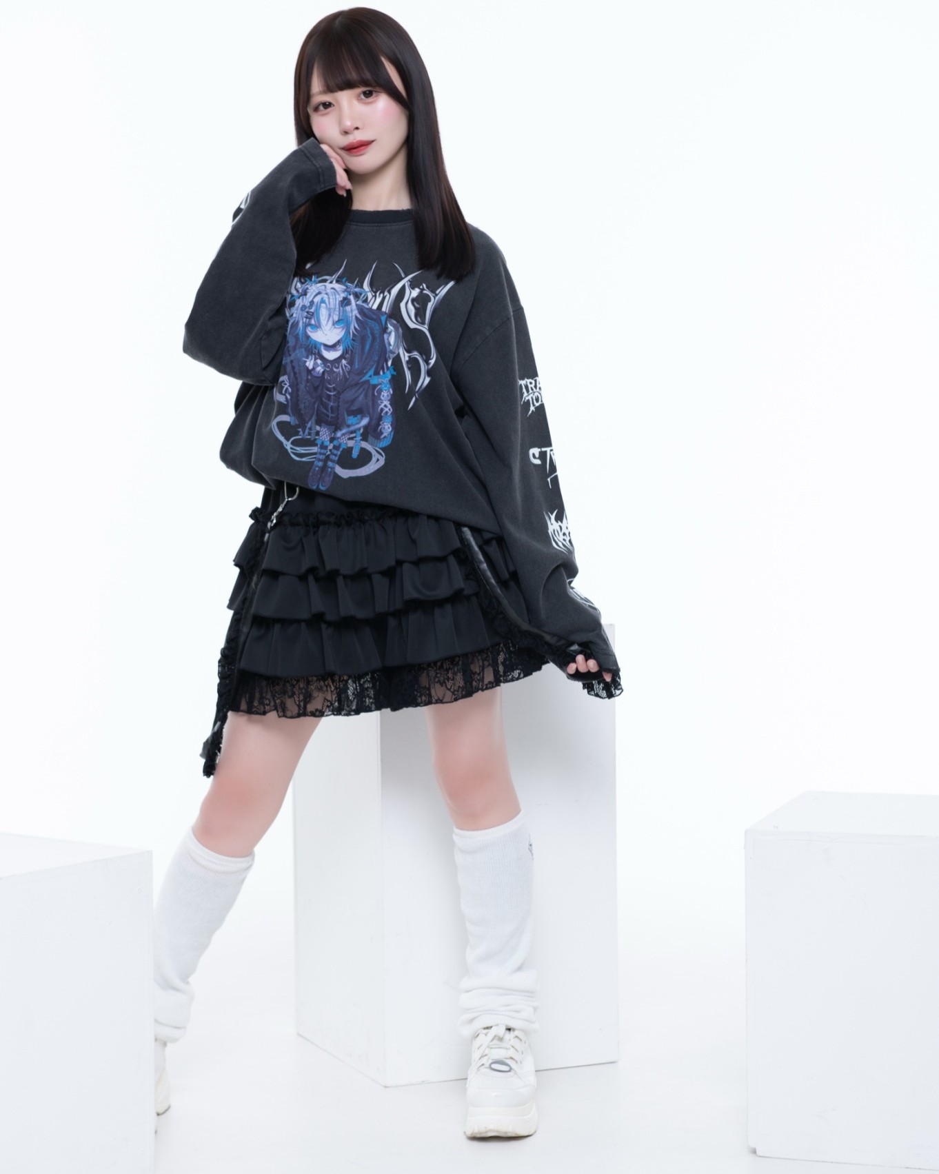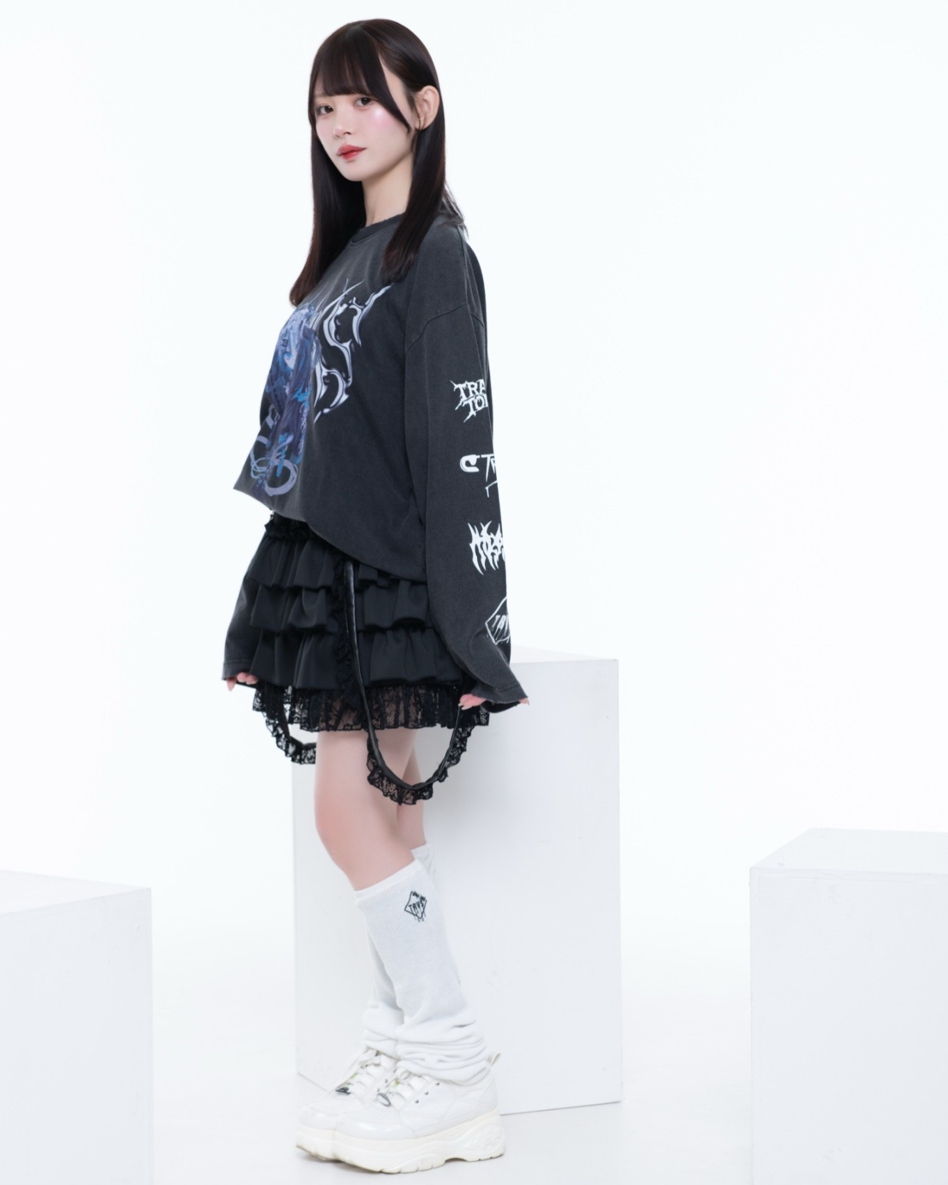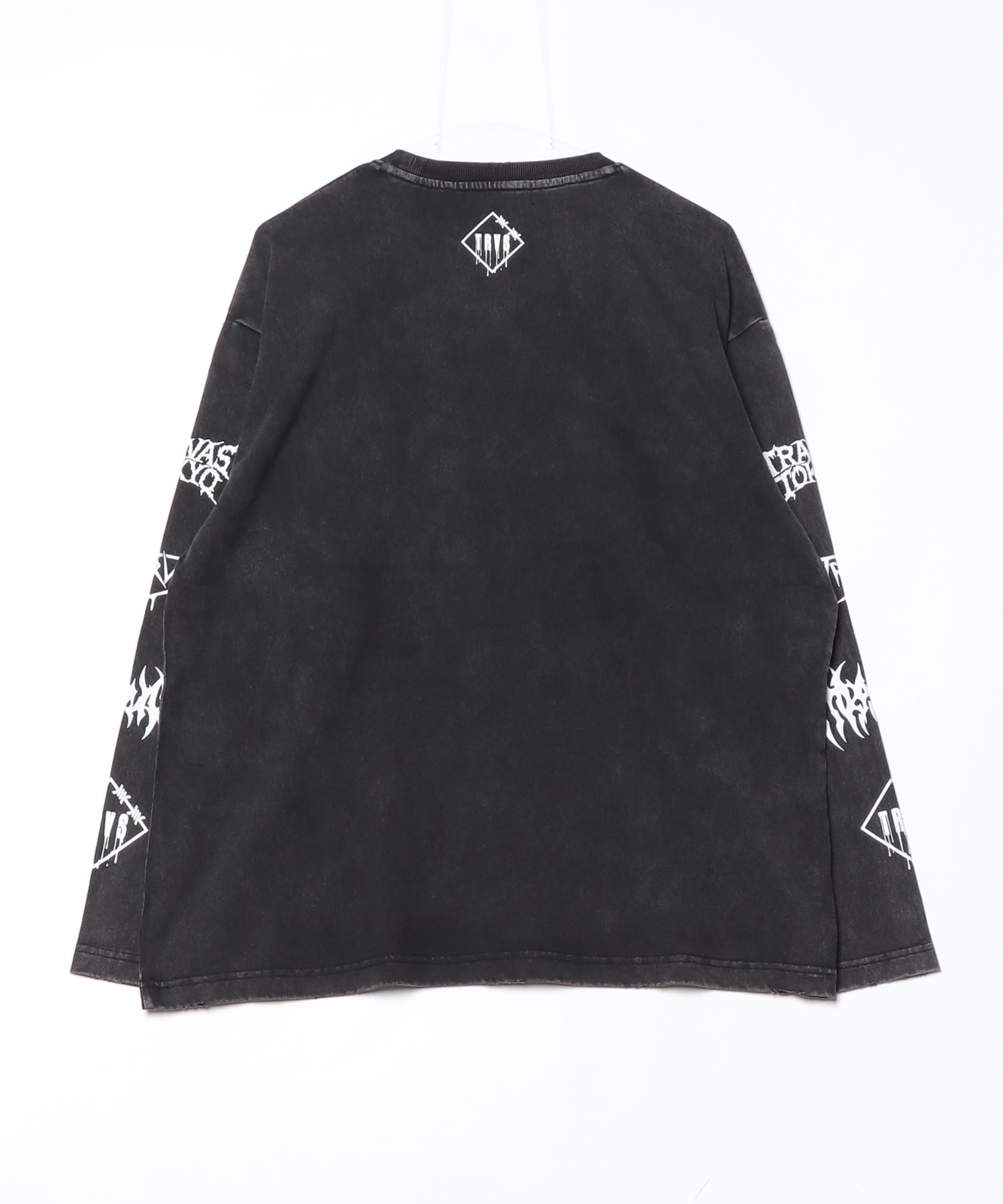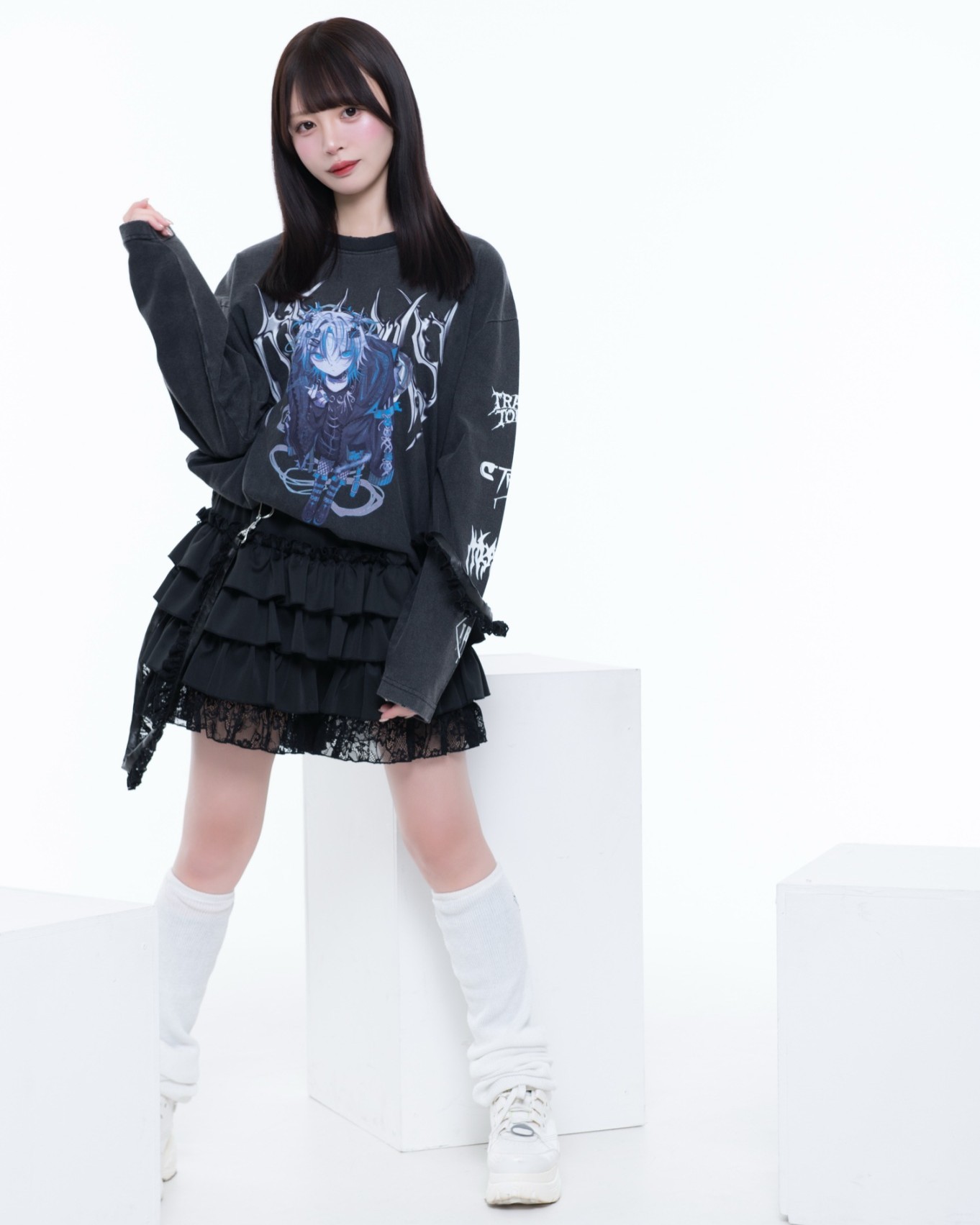 A long-sleeve T-shirt featuring a band T-shirt-style logo and an eye-catching girl print.