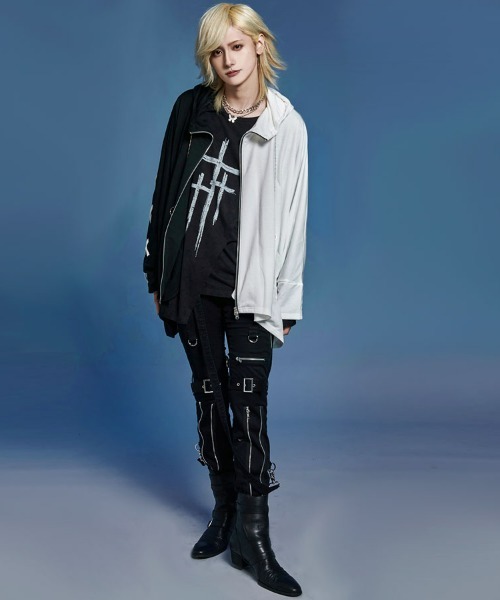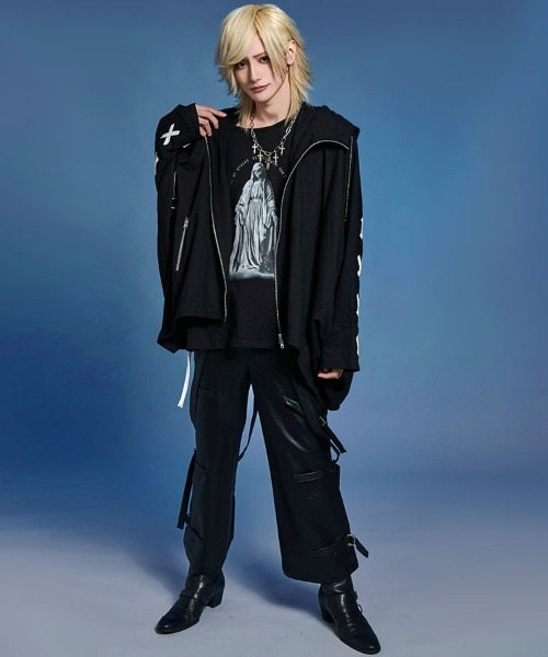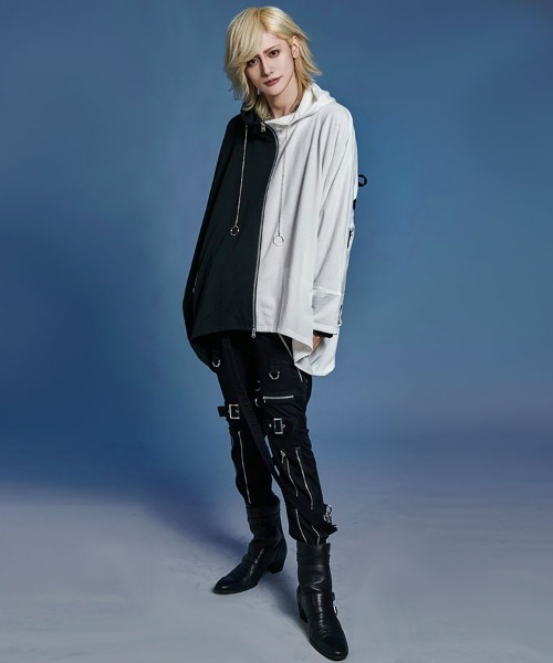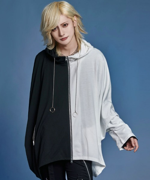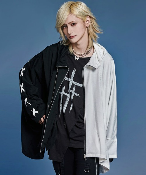 The distinctive poncho silhouette is complemented by a handcuff-inspired design chain at the neck, creating a striking visual with meticulous attention to detail.