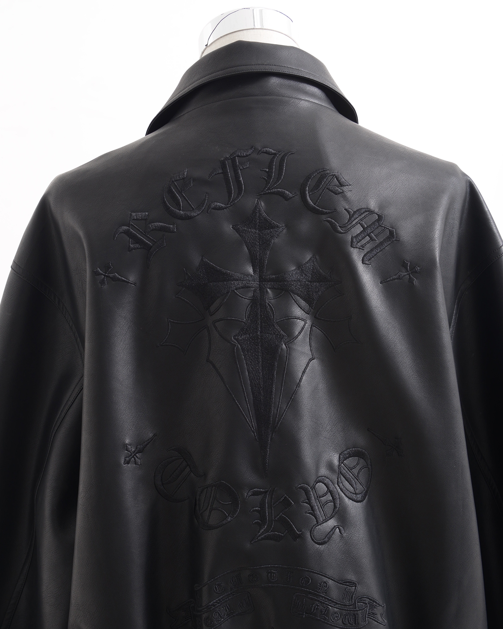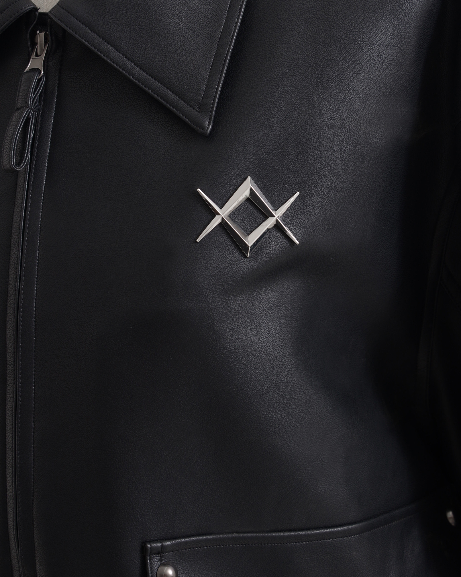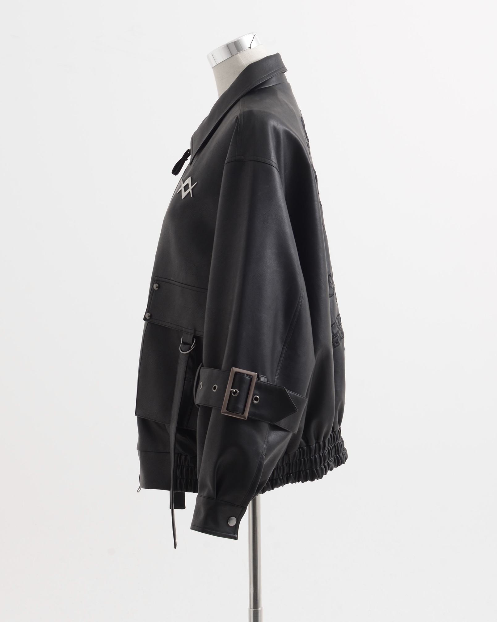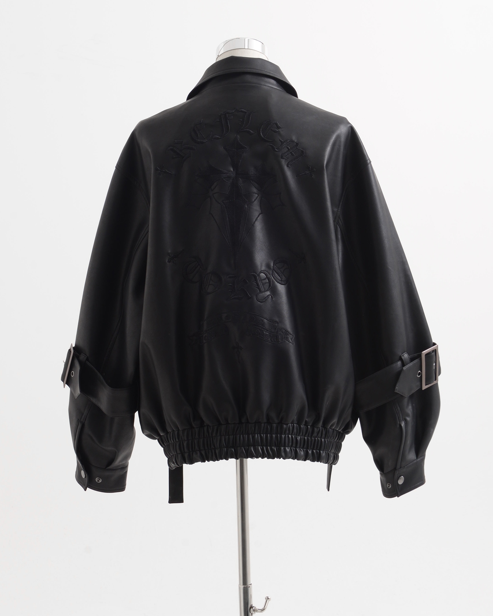 A PU leather blouson featuring distinctive cross and Old English logo embroidery.