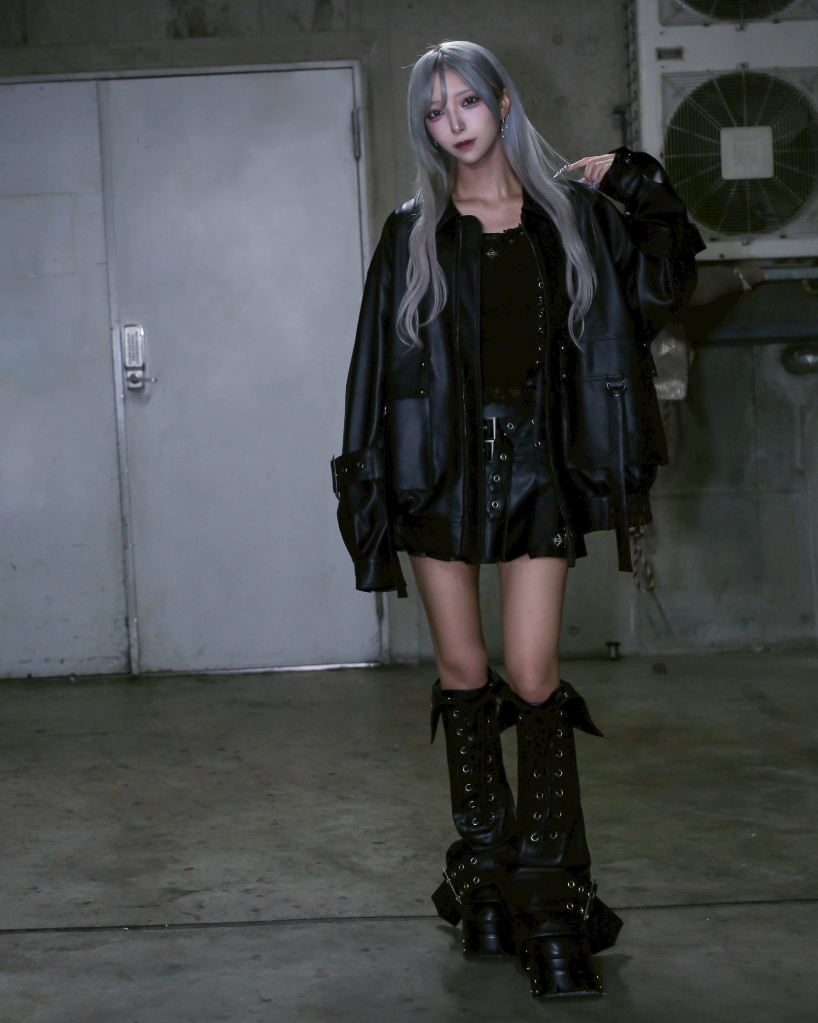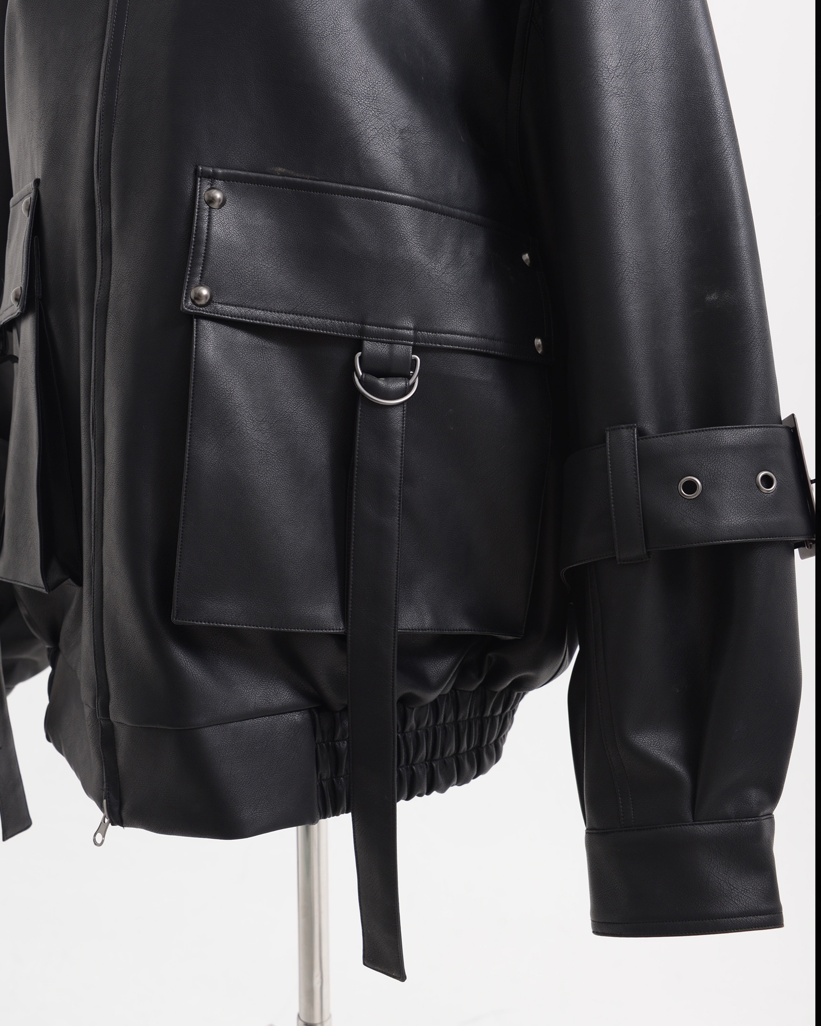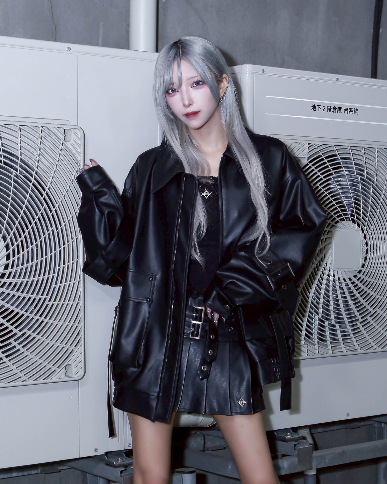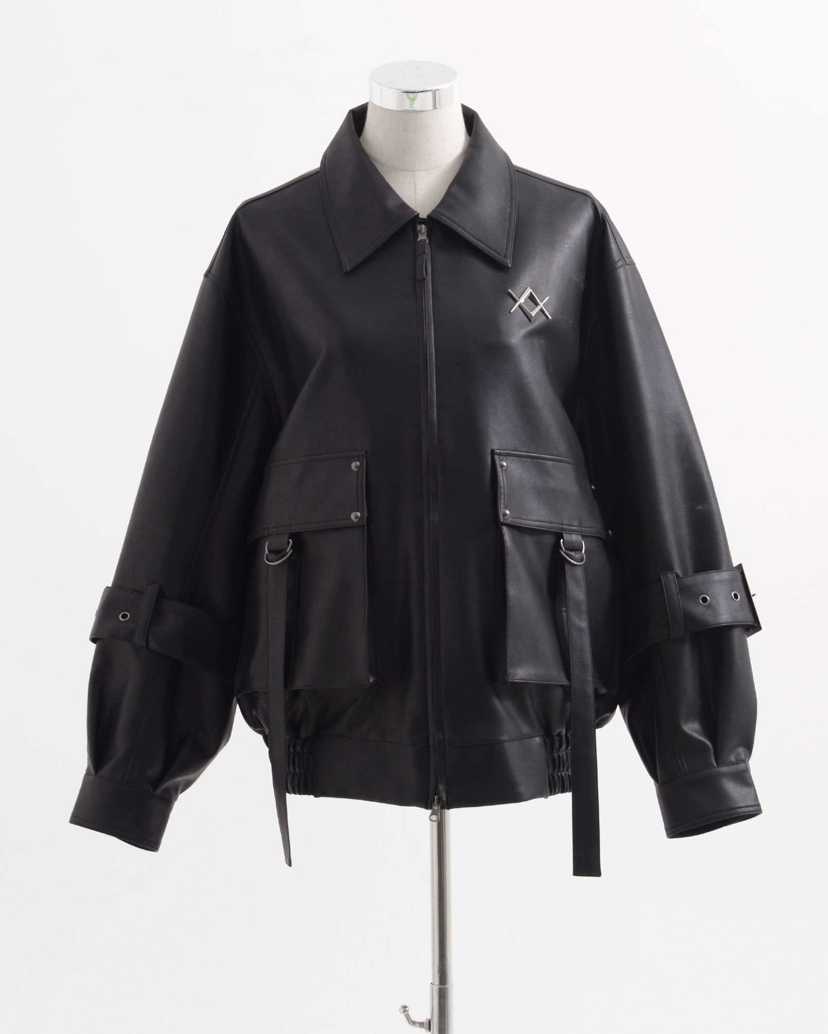 A PU leather blouson featuring distinctive cross and Old English logo embroidery.