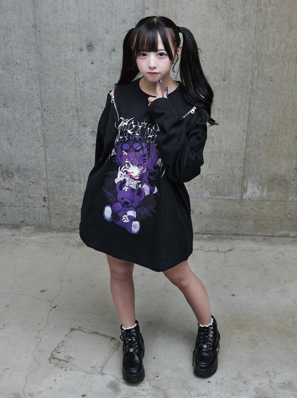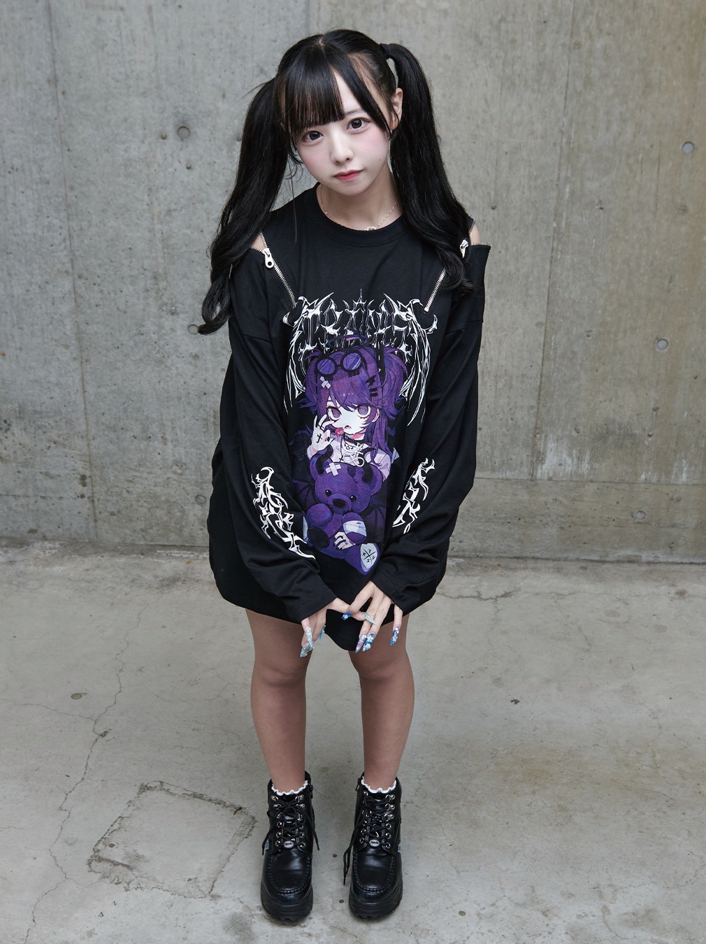 A collaboration long-sleeve cut-and-sew top with popular illustrator “Tira”.