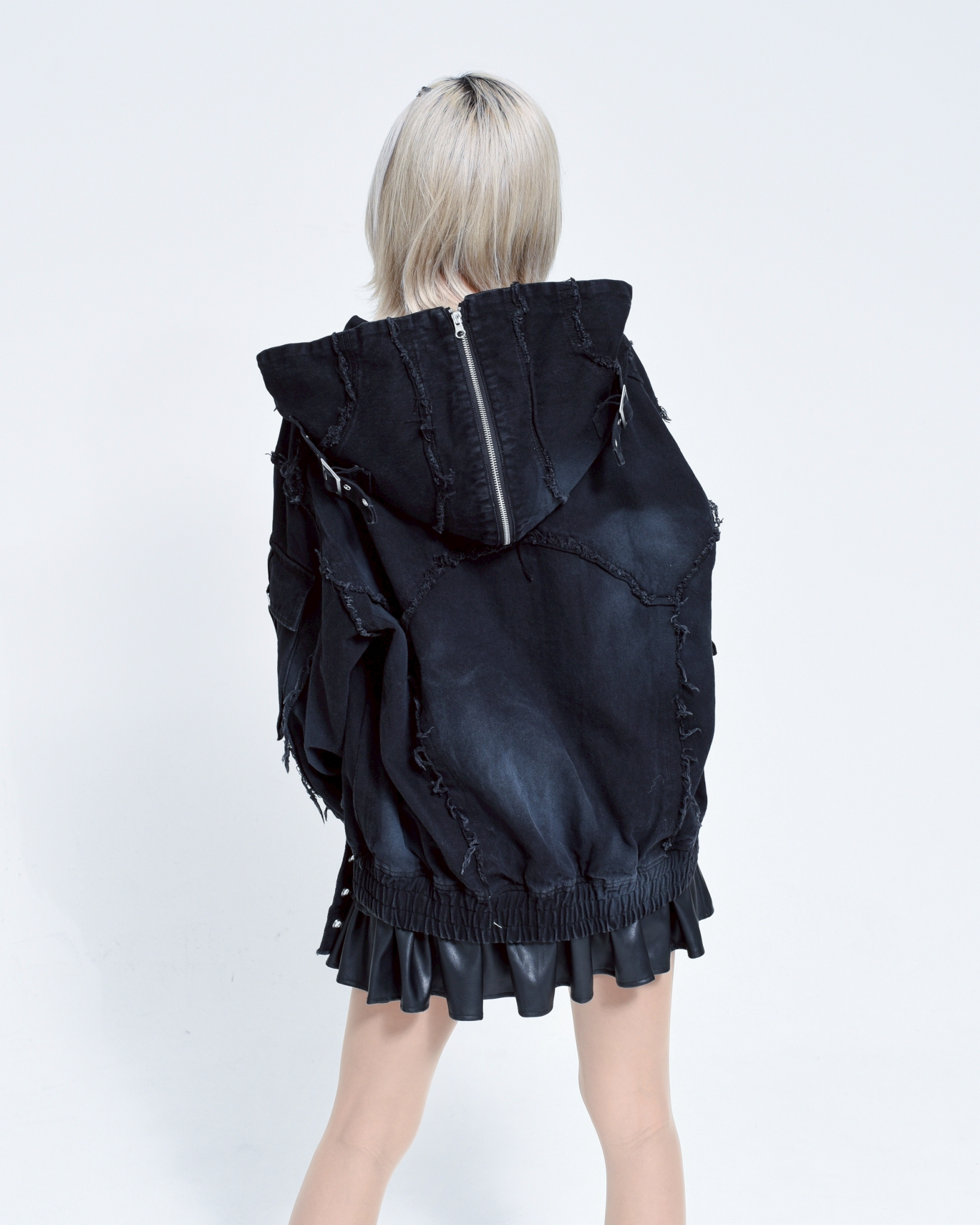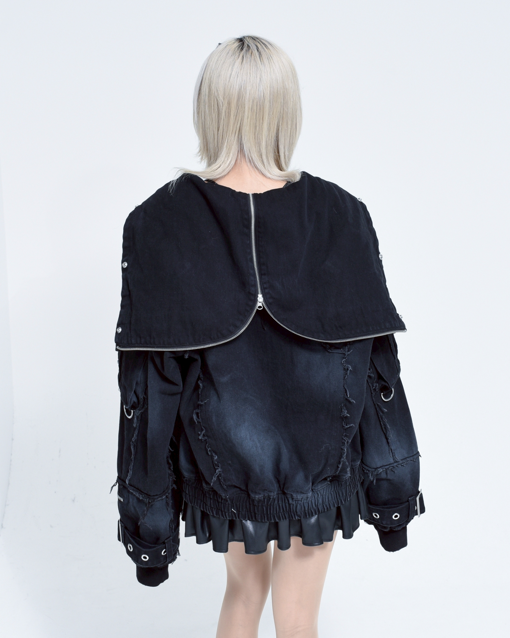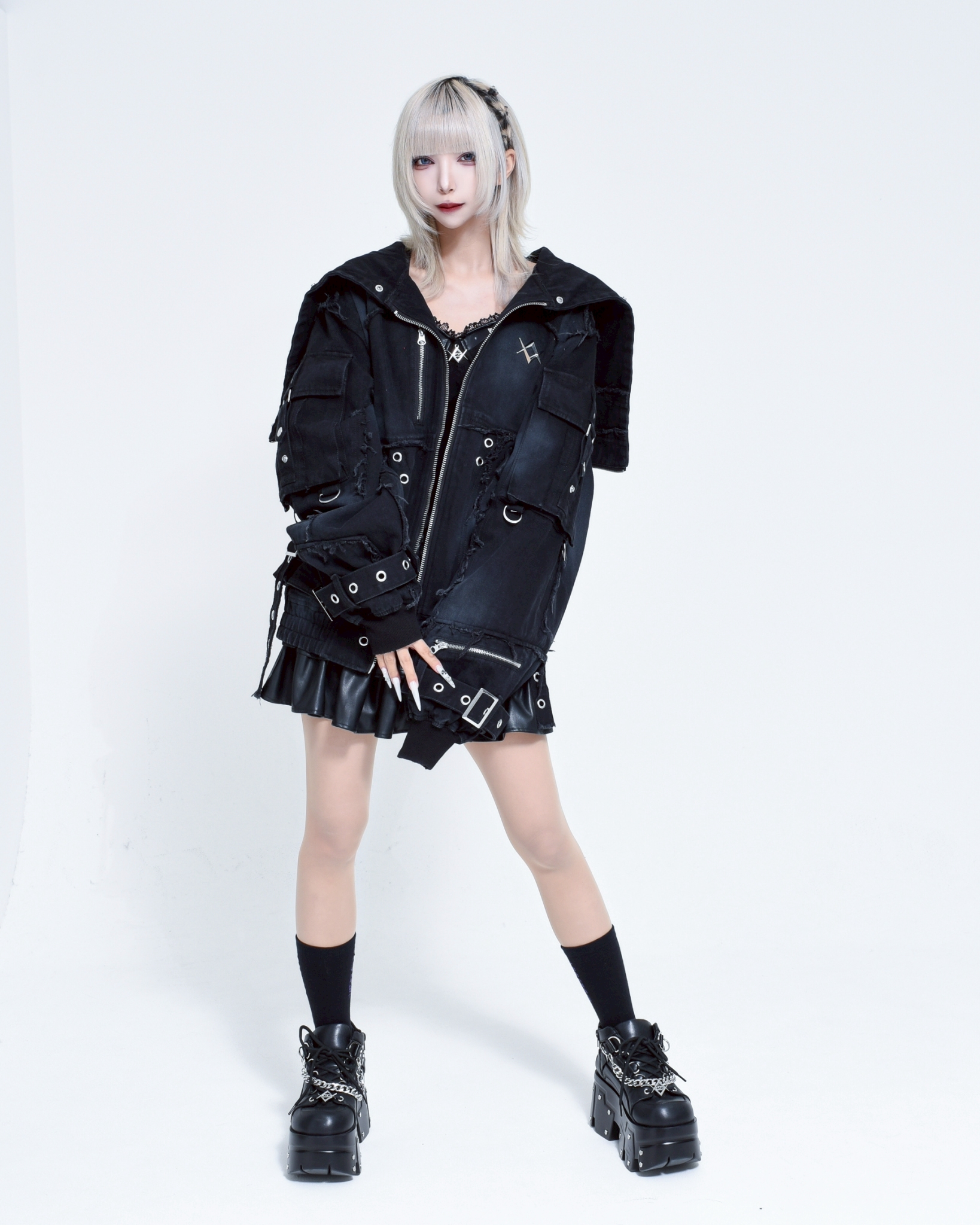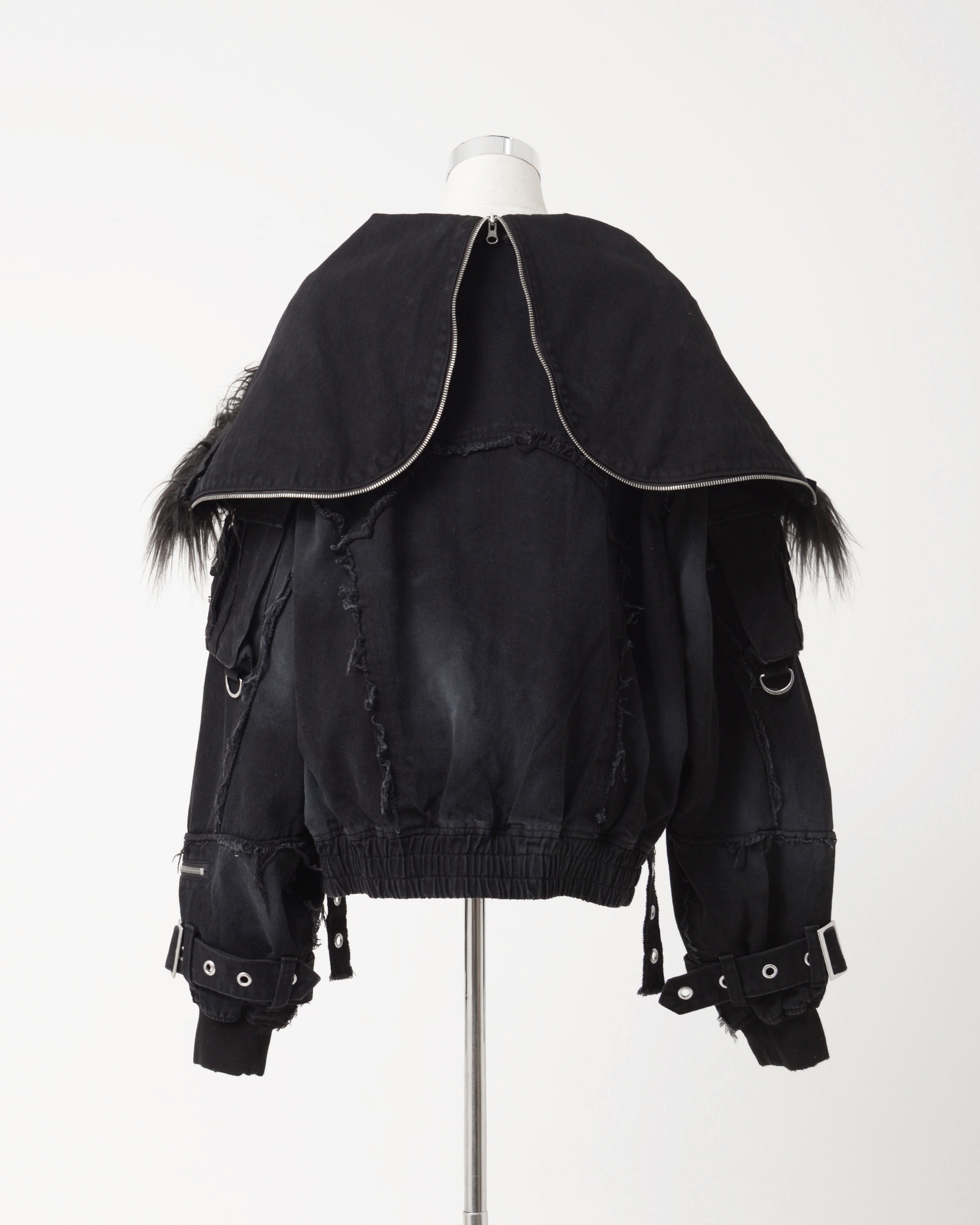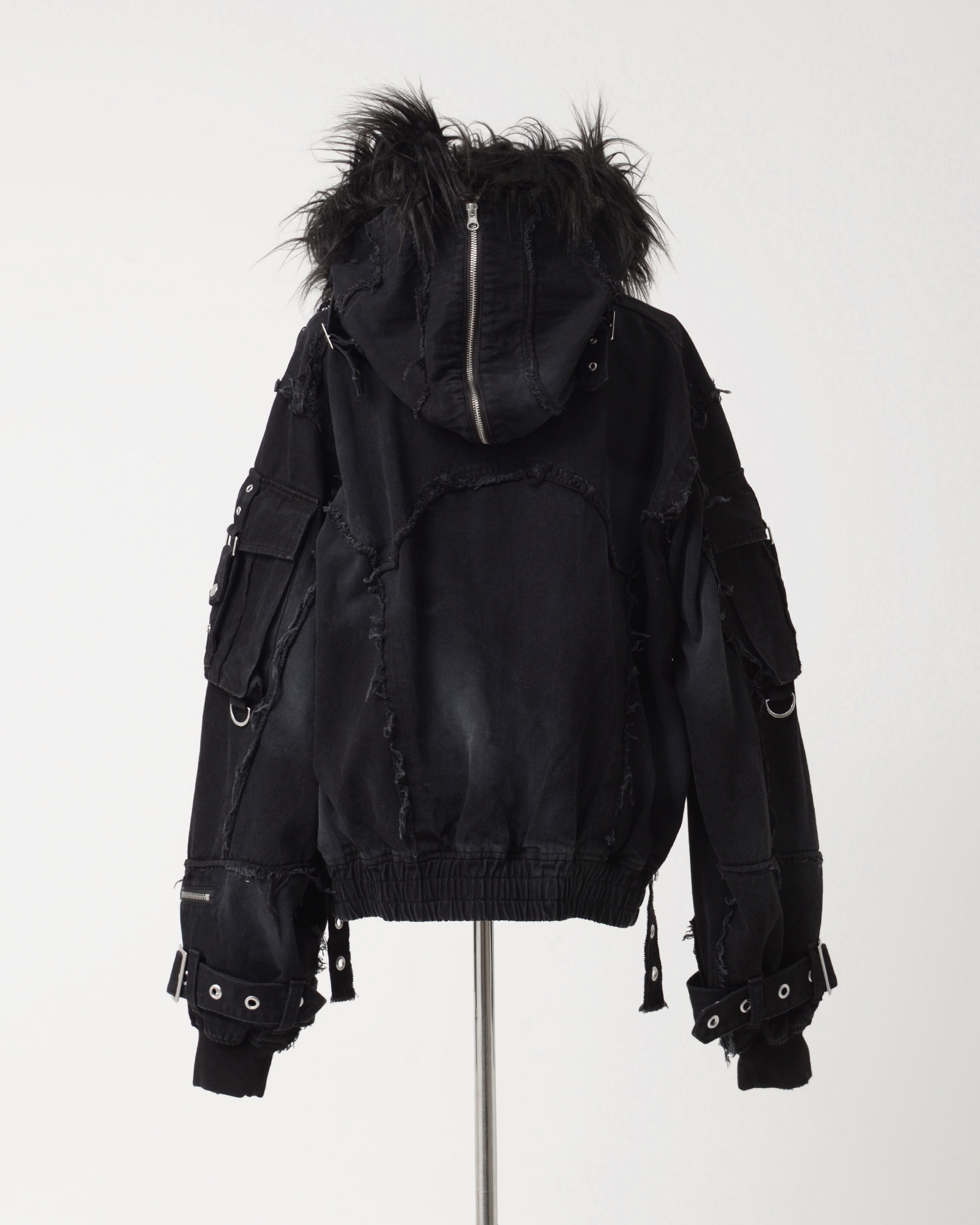 A N2B jacket featuring fur accents and decorative details. This piece combines REFLEM’s signature detailing with trendy elements. Perfect for dark street styles, and also pairs well with grunge and Y2K aesthetics. The unisex silhouette adds to its versatility.